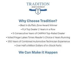 If you live in Seneca Falls, Waterloo, Canandaigua, Penn Yan or any surrounding community, Tradition Chevrolet Buick is your one stop shop for any Automotive need. If you find something you like and want to plan a test drive, call us at (315) 789-6811 prior to you making the drive to our Geneva location.